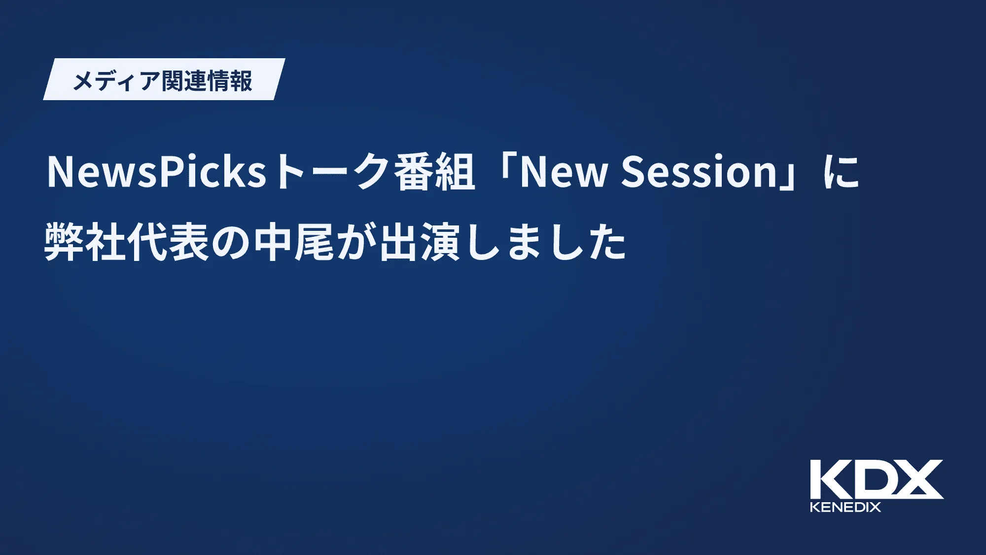 弊社代表取締役社長 中尾彰宏が、NewsPicksのトーク番組「New Session」に出演しましたのでご報告いたします。